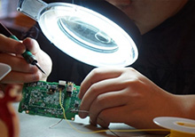 Инженер сервисного центра делает восстановление: заменяет испорченную комплектующую пригодной к эксплуатации заводской запчастью